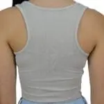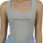 El body sin mangas casual beige tiene escote redondo, el cual le da un toque clásico y versátil, haciéndolo ideal para cualquier ocasión.